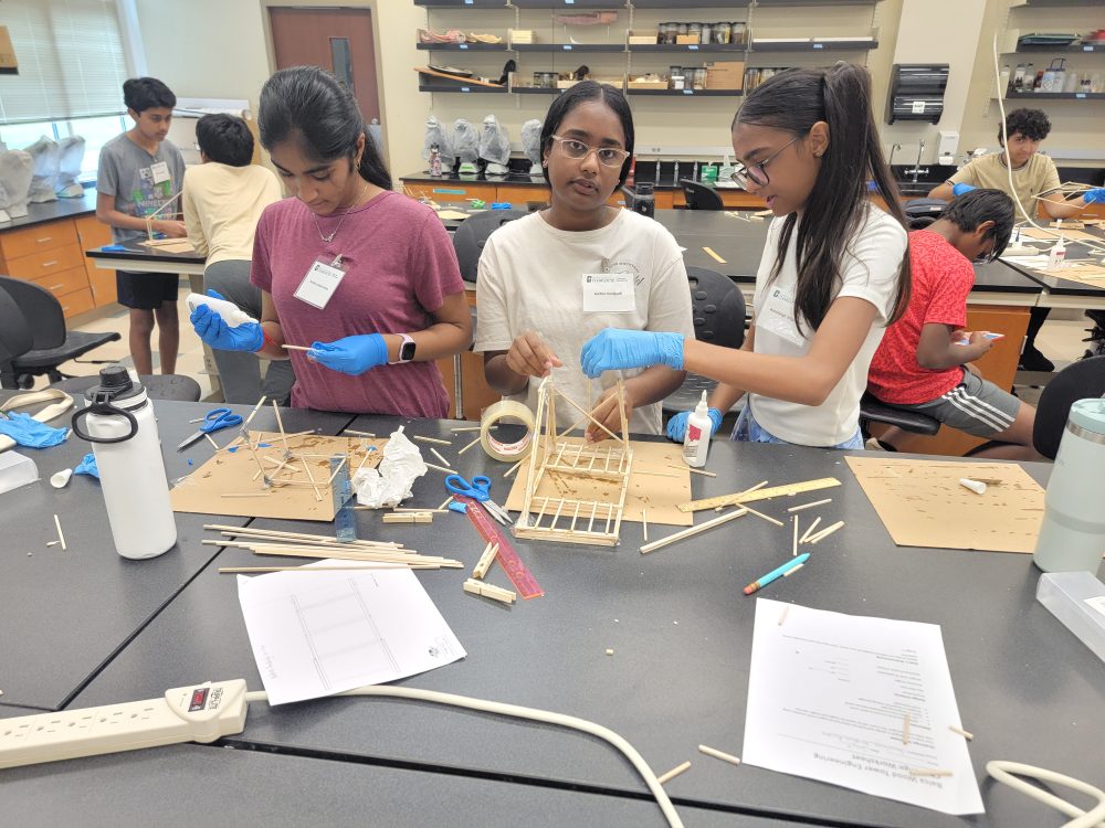 Students participating in a bridge building activity during Summer 2025.